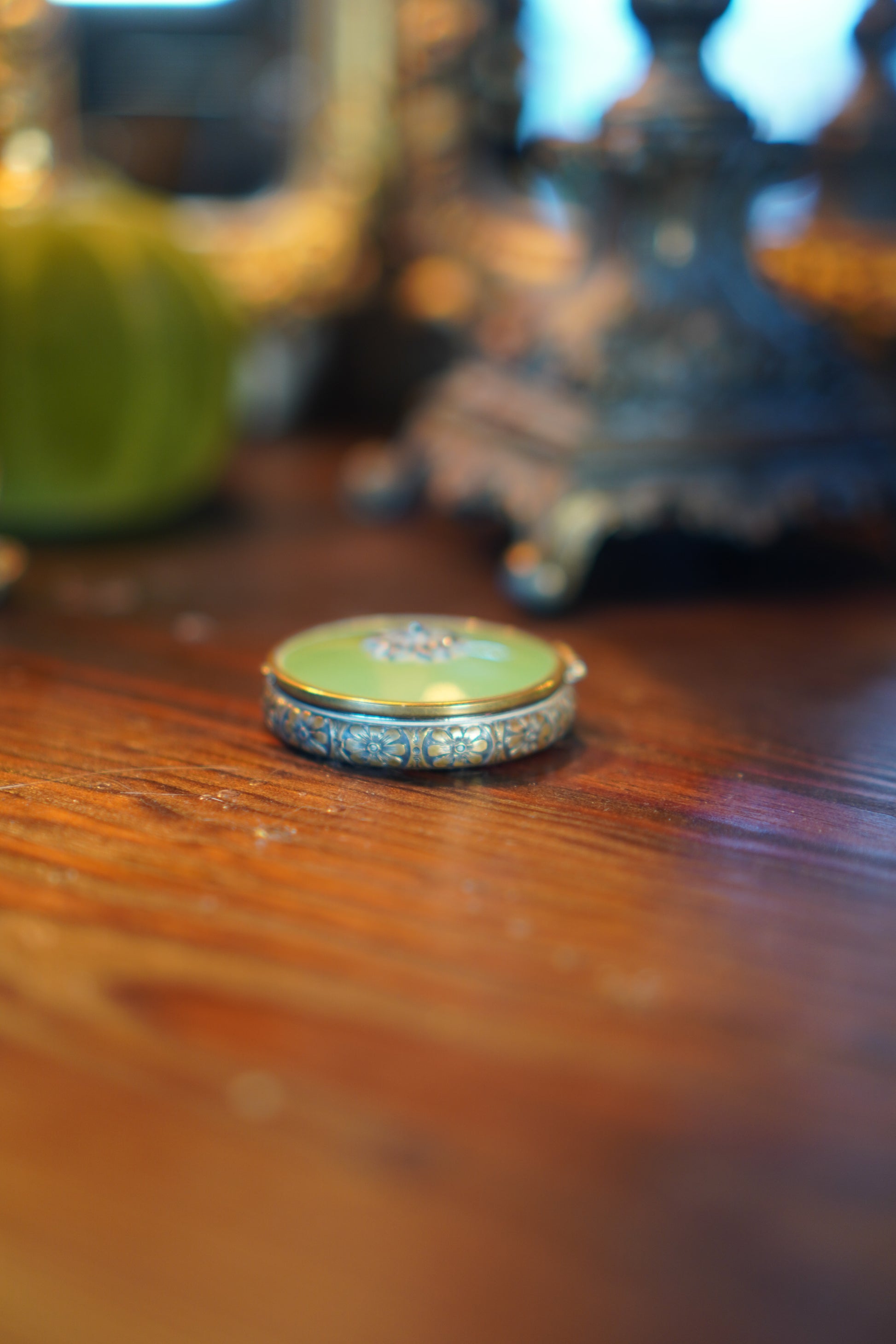 Dies wunderschöne Döschen (ca.1940) istim Durchmesser 4,5cm