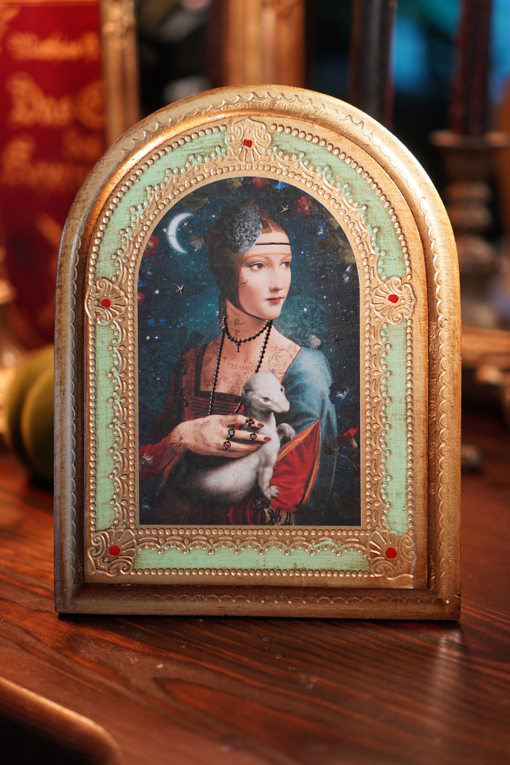 Die filigranen Illustrationen und die goldenen Akzente wirken wie kleine Kunstwerke, irgendwo zwischen Ikone, Märchen und Erinnerung. Jede Tafel hat etwas Ruhiges, Zartes – nichts Lautes, sondern etwas, das man immer wieder anschaut und jedes Mal neu entdeckt.
