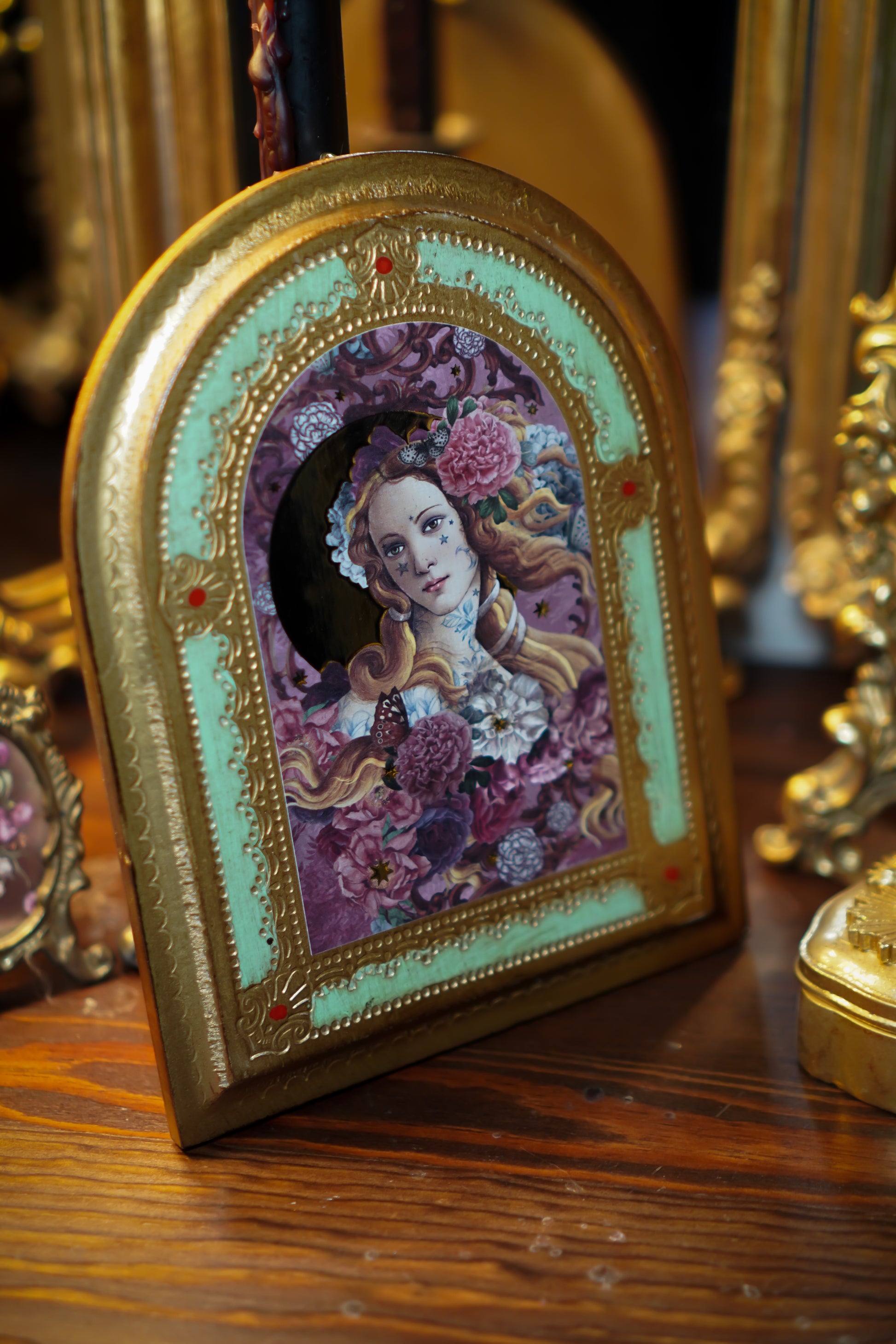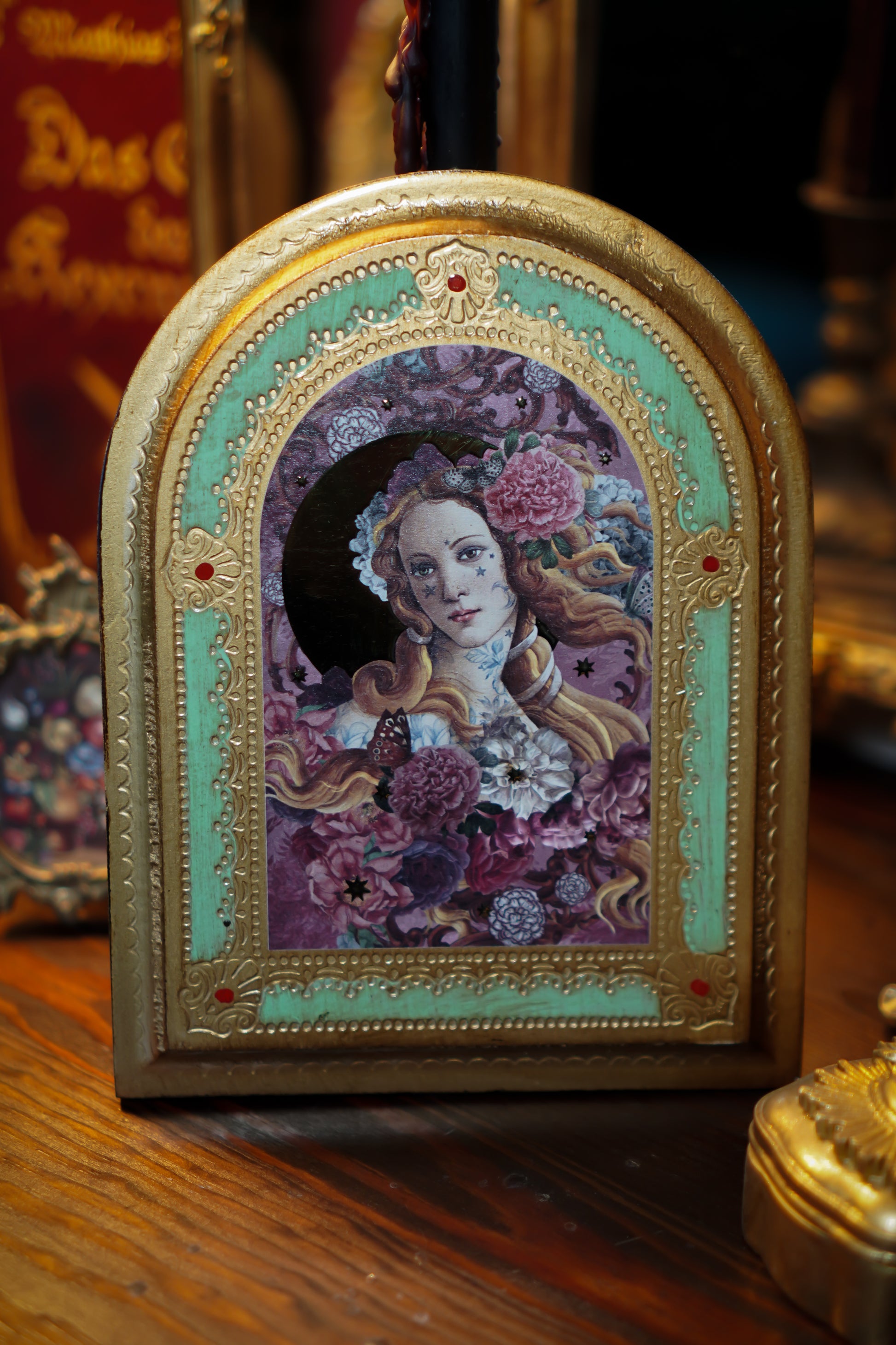 Die filigranen Illustrationen und die goldenen Akzente wirken wie kleine Kunstwerke, irgendwo zwischen Ikone, Märchen und Erinnerung. Jede Tafel hat etwas Ruhiges, Zartes – nichts Lautes, sondern etwas, das man immer wieder anschaut und jedes Mal neu entdeckt.